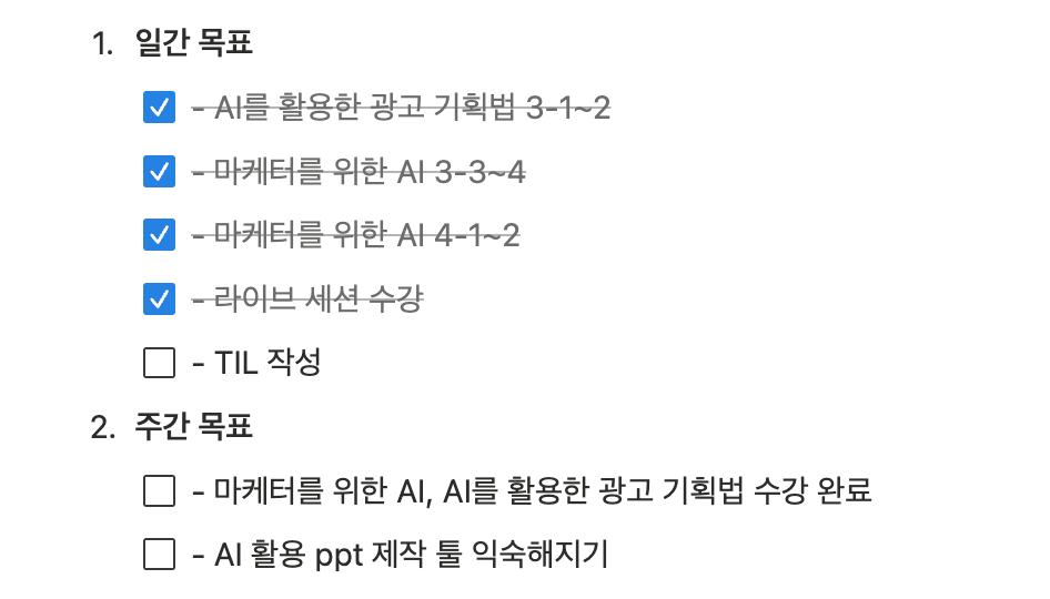 원래 금요일까지 "마케터를 위한 AI", "AI를 활용한 광고 기획법" 두개다 완강하려고 했는데