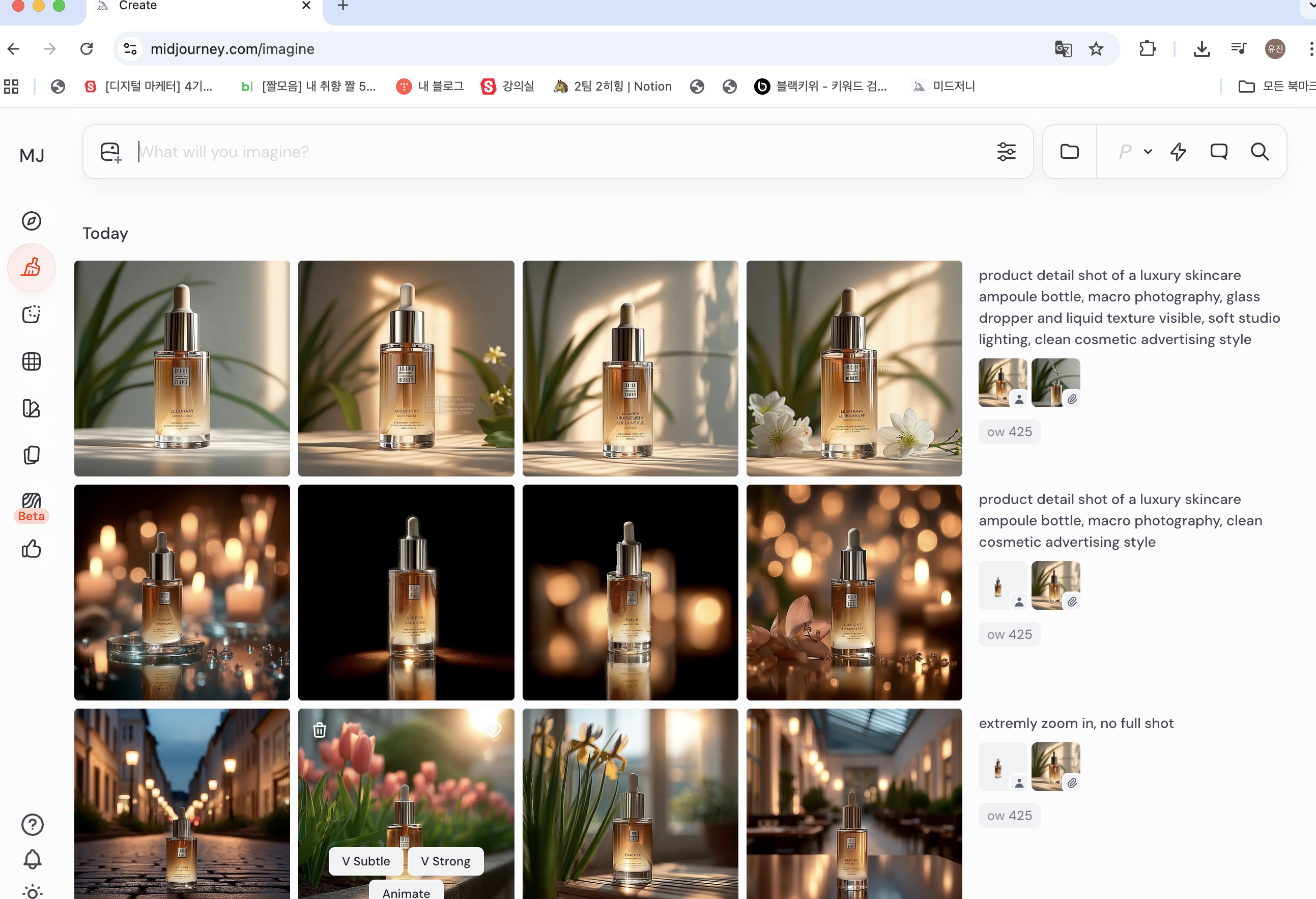 오늘은 미드저니 실습을 했는데 너무 오랜만에 만졌더니.. 사용법 거의 까먹어서 실습하느라 강의 제대로 못들었다ㅠㅠ